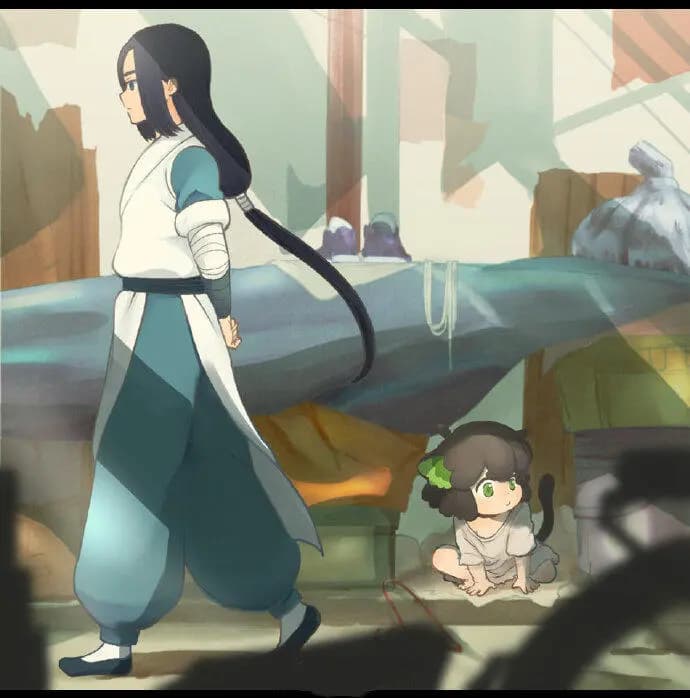 寻器之旅遇神秘猫妖 无限与小黑的冒险仍在继续!这次他们踏上了寻找老君遗留法器的旅程,林间的风似乎都带着一丝神秘的气息。两人小心翼翼地穿梭在树影之间,专注地搜寻着关于法器的线索,却没意识到一场意外的相遇即将到来。 突然,一道身影拦在了他们面前——猫妖首领薛淼出现在了眼前。薛淼的眼神中带着探究,似乎对这两位不速之客的来意十分好奇。无限立刻警惕起来,将小黑护在身后,准备应对可能发生的状况。 薛淼开口询问他们寻
