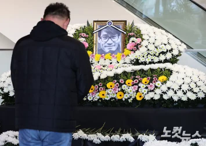 6日,首尔中区忠武路的首尔电影中心里,已故演员安圣基的追思空间静静伫立,一位吊唁者在献花后低头默哀,满含对这位演艺界泰斗的不舍与缅怀。这一幕被记者柳荣柱定格,成为众人追忆安圣基的珍贵瞬间。 韩国资深演员故安圣基的葬礼弥撒与电影人告别仪式,将在明洞天主教堂庄重举行。据安圣基方面7日透露,1月9日上午8点,首尔中区明洞天主教堂将率先举办葬礼弥撒,紧接着从上午9点开始,专为电影人筹备的告别仪式也将正式进行