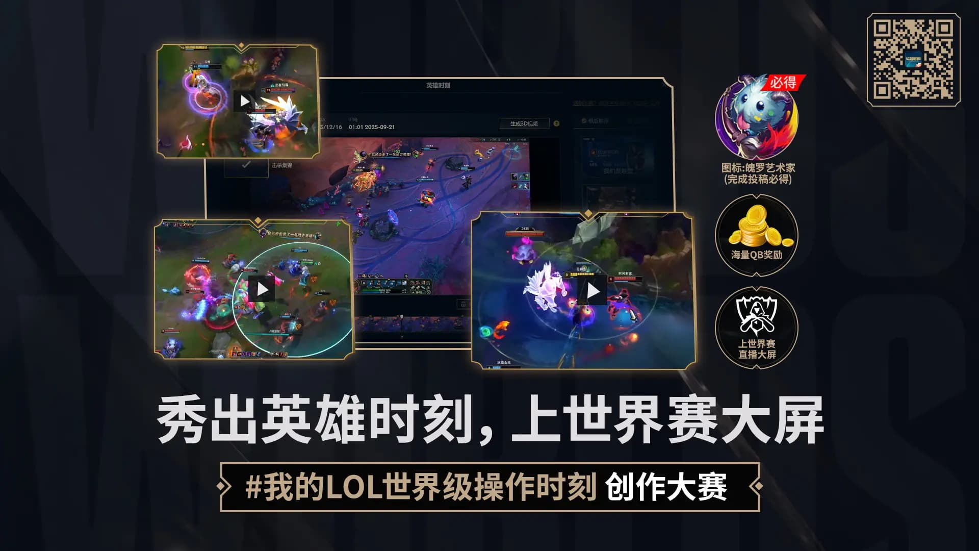 英雄联盟S15全球总决赛英雄时刻活动指南:领图标赢Q币好礼 英雄联盟S15全球总决赛期间,官方推出了一系列英雄时刻相关活动,玩家参与即可领取魄罗图标、Q币等丰厚奖励,还有机会让自己的高光操作登上全球总决赛大屏。下面为你详细介绍各活动内容及参与方式。 活动一:投稿英雄时刻领专属图标 玩家投稿英雄时刻不仅能免费获得魄罗艺术家图标,更有机会让自己的高光操作在S15全球总决赛大屏上展示,成为全场焦点。 (掌盟扫码